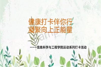 恰逢春日,循着春天一束束温暖的阳光,为了提高大家对运动的积极性,展现同学们的青春活力,体现大学生的时代风采和精神风貌,3月30日信息科学与工程学院举办健康运动打卡系列活动,我院学生积极参加了本次活动。