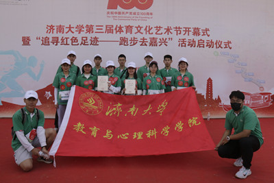 今年是建党一百周年,此次活动将运动与中国革命历史巧妙结合,定向运动路线打卡地点以重要的红色革命城市命名,终点命名为嘉兴。活动前期,活动主办方对本次活动规则做了简单的介绍,向参赛同学讲明打卡方式、发放跑步地图后宣布活动正式开始。一声枪响,教心团队立即出发。跑步过程中,参赛队员分工明确,团队步伐节奏一致,不断向终点迈进。现场气氛热烈,不少同学驻足观看为他们加油。路途中参赛成员相互打气、彼此鼓励,即使遇到困难也没有任何成员放弃,在此过程中他们充分感受到了团队的力量,展现出顽强拼搏、坚持到底的精神,也在打卡过程中学习到了更多革命历史,体会到了历史上红色革命奋斗精神。通过全体参赛成员的不懈努力,教心团队最终荣获得女子团体赛获第一名,团体总分排名第四的好成绩。