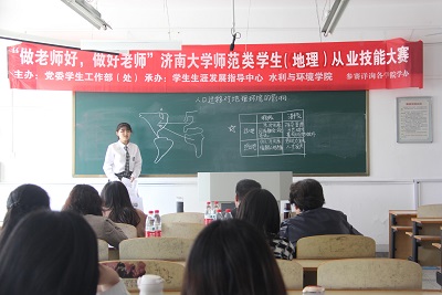 为适应新时代教师队伍建设改革要求,提升水利与环境学院师范生从业技能水平,为第九届山东省师范类高校学生从业技能大赛选拔人才,4月27日,yl23455永利水利与环境学院承办yl23455永利师范类学生(地理)从业大赛校级决赛。比赛邀请徐占福老师、吕淑琦老师担任校外嘉宾评委,周保华老师、解伏菊老师、刘展宏老师、宋鹏老师任校内评委。