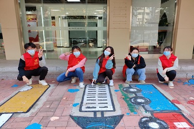 志愿者们协助工作人员在井盖、墙面、楼梯等处进行绘画,不仅能够美化市容市貌,还能减少井盖事故的发生。一个个原本脏兮兮的井盖、空荡荡的墙面和死板的楼梯变成了一座座宣传绿色城市的桥梁。此次公益彩绘活动为睦和苑党群服务中心增添了一道靓丽的风景线,给社区的孩子们增添了一份温暖,同时也将青少年参与社区治理融入文明城市创建活动中去,有效拓展了青少年参与社区治理新阵地,让共建文明城市的理念深入同学们心中,进一步弘扬了“奉献、友爱、互助、进步”的志愿服务精神。