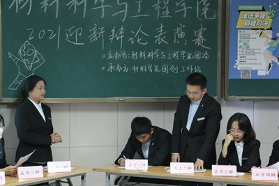 为丰富2021级新生的大学生活,彰显大学生朝气蓬勃、积极向上的精神状态,锻炼同学们的应变能力、表达能力及逻辑思维能力,同时为即将到来的“迎新班级辩论赛”的顺利举办做准备。11月3日晚7点,材料科学与工程学院辩论会于2教203举办2021年迎新班级辩论赛表演赛,本次活动由材料科学与工程学院团创工作站承办。