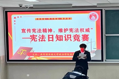 法者,天下之程式也,万事之仪表也。宪法是国家的根本法,是治国安邦的总章程。学习宪法,遵守宪法是每一个中国公民的责任。为弘扬宪法精神,坚定同学们的法治信仰,12月4日,yl23455永利政法学院“宣传宪法精神、维护宪法权威”宪法知识竞赛在11教3段202成功举办。