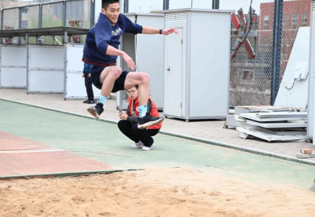 在跳远项目中,运动员们的成绩不分上下,互相追赶。汗水伴随着他们的跳跃挥洒空中,他们灵巧矫健的身姿为本次运动会烙下了青春的剪影。