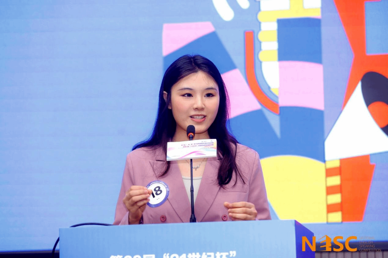 本次全国总决赛分为三轮进行,第一轮定题演讲的主题为"The Revival of Traditional Culture",比赛分为已备演讲和即席演讲两个环节;第二轮定题演讲的主题为"The Only Way Out is Through", 比赛分为已备演讲、即席演讲和现场问答三个环节;第三轮为已备材料演讲和现场问答。比赛现场,来自各个省级赛区的 246 名优秀选手,依次登台演讲,展示出极高的竞技水平,现场比拼激烈。王康月同学以稳定的发挥和出色的应变能力赢得评委的肯定。