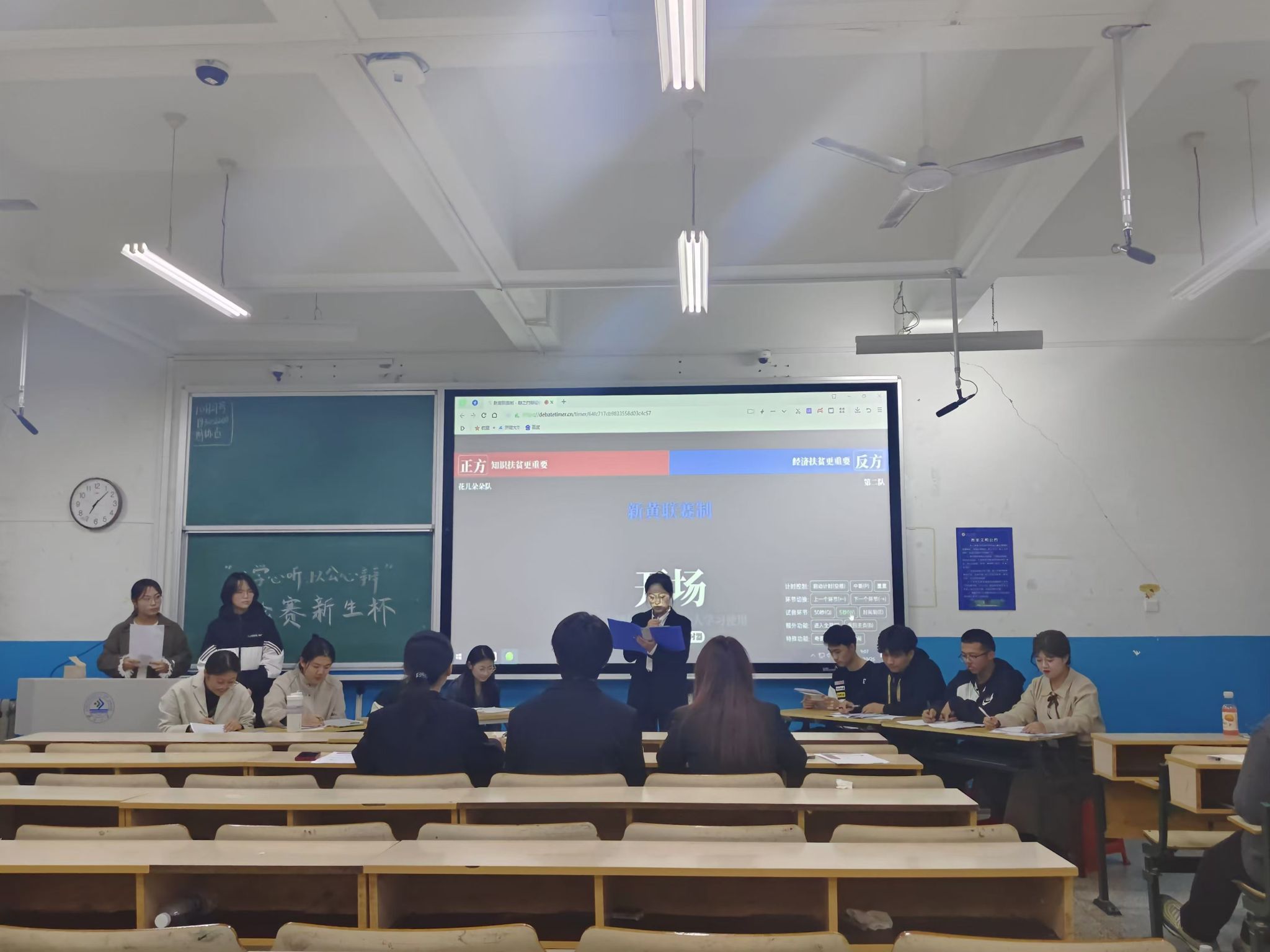 本次新生杯辩论赛共有四支队伍参与。初赛中,辩手们分别围绕“知识扶贫与经济扶贫何者更重要”以及“美颜技术的普及对社会审美是利是弊”两辩题展开激烈交锋,最终评选出两支队伍晋级冠军赛。