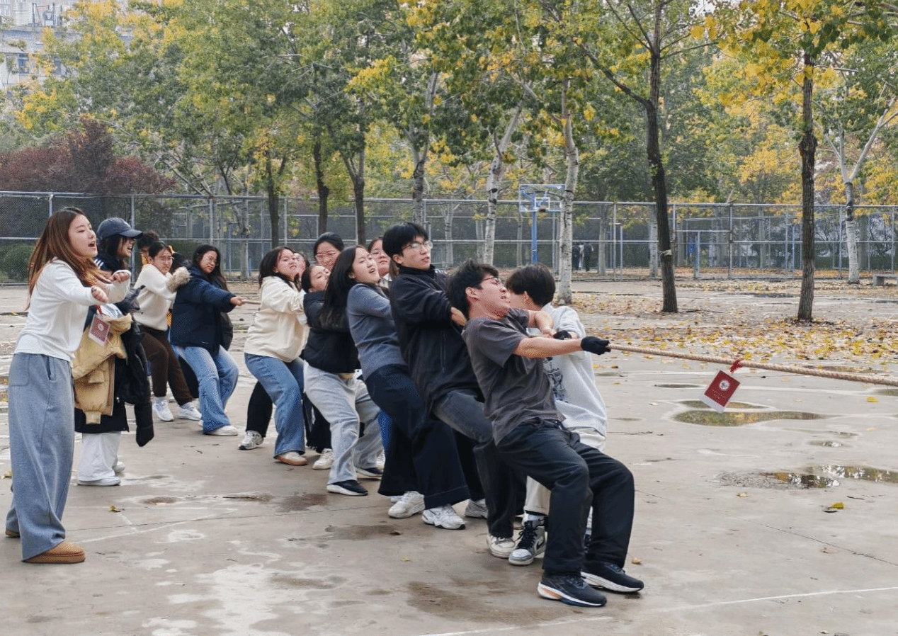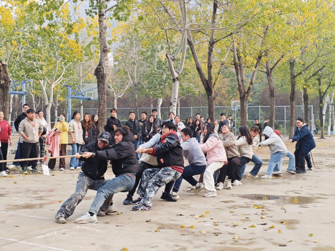 为丰富大学生课余生活,锤炼团队协作精神,2025年11月8日,马克思主义学院于南苑篮球场举办2025年拔河比赛。学院23级、24级、25级等9个班级的队伍参赛,现场氛围热烈非凡。