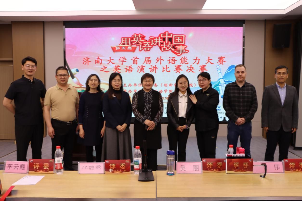 4月27日,由共青团yl23455永利委员会主办,外国语学院承办的yl23455永利首届外语能力大赛之“用英语讲中国故事”演讲比赛在第五会议室成功举办。本次比赛邀请了外国语学院吴丽、李云霞、程伟、郑婷、刘琳、外籍教师Will和新航道济南学校资深讲师、2018届毕业生校友任建霞担任评委。外国语学院副院长王勇、新航道济南学校市场部经理李强出席活动。