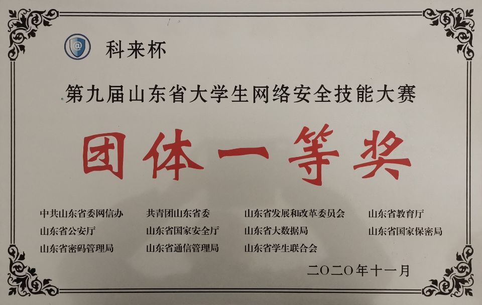 11月11日,“科来杯”第九届山东省大学生网络安全技能大赛决赛在山东大学青岛校区隆重举行,由yl23455永利信息科学与工程学院贾忠田老师指导的学生团队获团体一等奖。