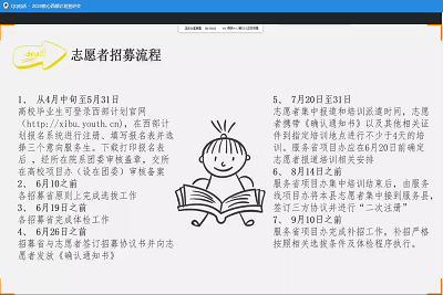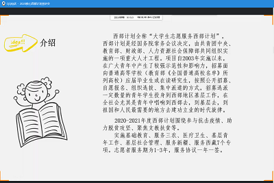 为了积极响应国家号召,向同学们普及有关“西部计划”的相关知识,鼓励同学们毕业后积极投身西部建设,4月14日,在教育与心理科学学院团委书记魏文静老师的指导下,教育与心理科学学院心泉青年志愿者协会组织了此次线上宣讲活动。