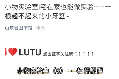志愿者们提前录好了实验课堂的视频,写好实验课堂的讲稿,将内容发送给山东省少儿图书馆的老师,由他们将实验课堂在山东省少儿图书馆的微信公众号上播出。在视频课程中,志愿者们首先用有趣的例子向孩子们抛出疑问,引出本次实验的主题,并引导着孩子们进行思索和考虑。之后通过实验,实验中志愿者先是搭建了一个奇怪的牙签平台,利用杠杆原理,成功的将压在最下面的牙签撬动,神奇非凡,随着牙签平台的增长,牙签依然能被撬动,而且撬动的越来越高!而在视频之外,是所有志愿者们的辛勤付出和精心设计,是每一个参与者的汗水和相互鼓舞。一次次失误才铸就了完整流畅的这一次视频。视频一经播出,志愿者们就受到了观众小朋友的喜爱,而少儿图书馆的微信公众号的该视频也获得了网民的点赞和鼓励。