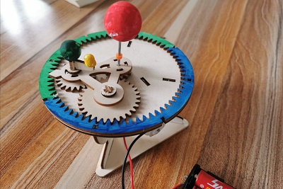8月5日,服务队中身住济南莱芜区的亓志昊同学,借助辅导班教课的便利,进行了多次线下科普志愿服务。8月5日上午八点半,亓志昊同学像往常一样上班,但这次与以往不同的是,他带了来三球仪(又称月地运行仪是一种天文教学和天文普及仪器),三球仪由代表太阳、地球和月球的三个小球组成,并有机械联动装置,用以演示三球关系和由此产生的一些天文现象。亓志昊同学通过与小朋友们共同组装三球仪,通过一块动手组装,让小朋友们感受到了科学的乐趣,组装完成后,将电源接通,看着太阳、地球、月球的相互运动,小朋友们发出了惊呼,感叹科学的神奇。亓志昊同学借助三球仪向小朋友们解释了太阳、地球、月球各自的运动规律,以及天体运动对地球上人们生活的影响,小朋友们听的津津有味。讲解完之后,小朋友们追问亓志昊同学了许多问题,亓志昊同学也非常高兴的用通俗易懂的语言回答了他们。