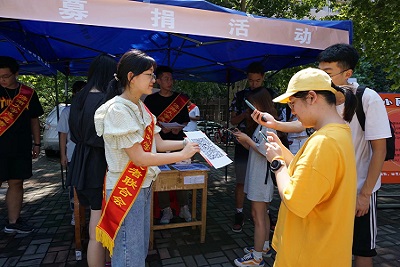 为进一步弘扬奉献精神,9月8日,水利与环境学院环抱碧水青年志愿者协会成员们于八食堂广场处参与“济大希望小屋”募捐活动。