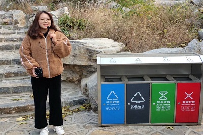 一路上秋风微凉,但志愿者们热情不减。到达第一处休息地点后,李红波向大家讲解了垃圾分类的相关知识,以呼吁同学们在日常生活中将垃圾分类,让资源再生。短暂休整过后,志愿者们继续前进。树影幢幢,山高路陡,在保证自身安全的前提下,志愿者们也在积极捡拾沿途的垃圾,保护青山绿水。不久,志愿者们便到达了第二处休息地点,张云涛开始向大家讲解消防知识,让志愿者们认识了到到消防安全的重要性。随后,志愿者们继续向上攀登,终于抵达半山腰处的凉亭。孙晓蕾为大家讲述了中国传统建筑——“亭”的有关知识,丰富了大家的传统知识储备。在这里,志愿者们一起玩了许多小游戏,活跃了活动氛围,拉近了同学们之间的距离。旅程还未结束,志愿之旅还在继续。登高望远,秋意更浓,山顶的风景令大家耳目一新。志愿者们纷纷拍照留念,记录下这个美好瞬间。欣赏完风景并捡拾完山顶的垃圾后,志愿者们开始有序下山。返回的过程中,同学们仍不忘留意是否还有垃圾遗留。途中,田茂泉还为大家讲解了气候与植被的有关知识,加深了大家对大自然的了解。 下午4:00,全体成员安全返回山脚。志愿者们做最终清点时发现捡到的垃圾并不算多,这一点让大家非常高兴,欣慰于环保理念深入人心,本次活动也画上了圆满句点。