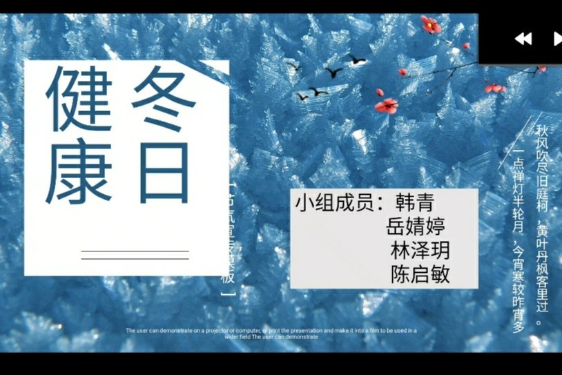 活动准备期间,志愿者们先构思了整个活动的流程和内容,并按计划做好小组人员分配。视频内容分为四个主题,分别是预防常见电信诈骗,手机基本使用流程,老年人冬季养生,丰富多彩的老年生活。活动进行时,志愿者利用多种途径查找相关资料,进行编辑排版,制作出贴合主题的PPT用于讲解。接着其他队员使用相关录屏软件,根据PPT内容,合作进行了视频的录制。一周的时间内,志愿者通过多次的尝试和改进,在11月6日完成了视频的最终录制,活动圆满结束。