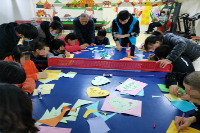 下午一点,志愿者们准时到达天翼儿童训练中心,康复中心的老师对志愿者的到来表示热烈欢迎。随后,康复中心的工作人员对志愿者进行了培训,详细介绍了每个孩子的状况。安排妥当后,志愿者和孩子们先看了半小时的动画片,相互了解后,志愿者和孩子们做起了剪纸游戏,帮助他们做了一张张感恩父母的贺卡,刚开始孩子们还很害羞,经过志愿者们耐心的辅导,孩子们渐渐敞开心扉,欢笑声遍布教室的每个角落,老师们也露出了欣慰的笑容,孩子们快乐的享受着游戏,这一刻他们与正常孩子一样,无忧无虑的过着童年生活。最后,活动在温馨的氛围中结束,看着孩子们依依不舍的眼神,志愿者们感到付出得到了回报,纷纷表示要坚定将爱心传播下去。