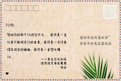 为增进同学友谊,促进同学间的和谐相处,传递彼此祝福,表达真实情感。文化和旅游学院青年志愿者协会于11月24日至30日举办“信递温情,邮你更温暖”活动。此次活动以明信片的形式用一卡递温情,传递友谊。