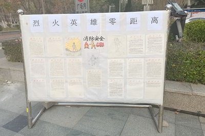 活动伊始,志愿者认真组织宣传,调动同学们参与的热情,为活动的进行做足准备。活动期间,学生们通过在QQ群发布传颂英雄事迹并写寄语、绘制“我心中的消防英雄形象”的方式参与其中,借助从网上阅读消防知识与消防英雄的事迹、观看讲述消防英雄电影的方法,加深学生们心中对消防员这个职业的认识,同时为他们甘于奉献的精神所感动,增强了消防责任意识。线下活动当日,志愿者们在文史楼大厅布置好活动场地,收到了许多同学们用心制作的稿件,同学们通过文字和绘画来表达自己对消防员们的敬意,展示自己心目中的英雄,一份份优秀的作品流露出最真挚的情感,经过一番评选,11月30日,优秀作品在经管楼前展板向全体师生展出,进一步向大家宣传消防英雄事迹,提高师生消防安全意识,营造一个良好的关注消防问题的氛围。