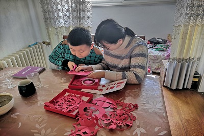 2月3日上午,yl23455永利自动化与电气工程学院“守望晨曦”志愿队队长车璐妍来到山东省济南市章丘区小学六年级留守儿童家中,并为他带礼物,其中包括唐诗三百首、剪纸礼盒等等,随后与他共同剪纸并辅导其学习唐诗三百首。