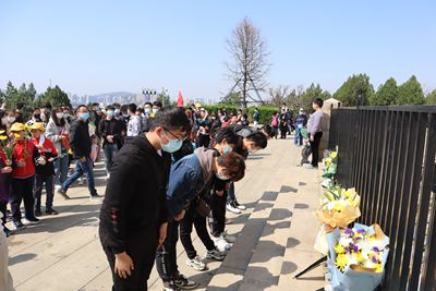 庄严肃穆的英雄山革命烈士纪念塔下,三个学院的三十余名同学手持鲜花,队列整齐。在主持人邓富为宣读活动意义后,全体同学肃立默哀,共同感念革命先烈为国家和人民安康幸福而牺牲的伟大功绩。默哀完毕后,大家按照队列顺序依次上前,怀着崇敬的心情向烈士鞠躬并献上鲜花。今天天气晴朗,微风轻抚,一片祥和。塔下,前来祭奠的市民络绎不绝,革命先烈们用鲜血谱写了伟大的人生,他们的精神值得我们歌颂和赞扬,他们的人生值得我们学习,大家在革命烈士纪念塔下共同瞻仰,这盛世,正如他们所愿。最后,全体同学合影留念,至此,活动圆满结束。