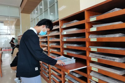 本次志愿活动内容分为两部分,一是在工作人员的带领下整理报刊,二是对新的展览进行布置。活动伊始,由负责人查点志愿者人数与所需工具数量是否齐全。随后负责人和图书管理人员接洽,并做好入馆服务前的准备工作。入馆后各个小组按照既定分工开始志愿者服务工作,志愿者们主要负责整理书架上的书籍,打扫馆内地面卫生和擦拭书架上的灰尘以及帮助济南市民办理借书卡。同时和工作人员一起规劝图书馆内的不文明行为,如大声说话,乱摆放图书,自习室或阅览室占座等。志愿者们态度认真,乐此不疲,与工作人员配合默契。服务完成后,各个小组收集好各自的工具迅速集合,全体志愿者与图书馆工作人员在济南市图书馆前合影留念。最后,在负责人的带领下,各位志愿者有序离开了图书馆。