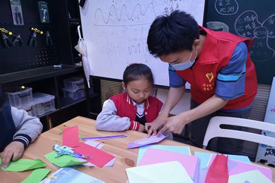 志愿者首先向小朋友们讲述了中国传统折纸的发展历史和折纸中所蕴含的中国人民对美好生活的向往,加深了小朋友们对折纸的深层次理解。紧接着志愿者向小朋友们讲述了折纸的各种技巧并亲自教授小朋友们折各种他们感兴趣的小动物和小物品,在寓教于乐中引发小朋友们对折纸的兴趣。折纸完成后,志愿者们对小朋友们的折纸成果进行集中展示、评比,在合理的竞争中使小朋友们更快更好地掌握折纸的基本技巧。