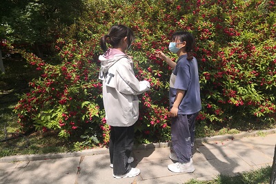 此次活动秉承着“传递温情,从专业出发服务大众”的主旨,进一步弘扬志愿精神。志愿者们与同学们一同来到情人坡,为大家普及校园花草树木知识。首先,志愿者们为大家介绍了分布范围较广的乔木和灌木,并讲解了这些植物的科属分类,品种特点和其在学校的分布区域等内容,具体讲述了有关玉兰科、蔷薇科植物的知识,告诉大家这些植物的异同点和辨别方法。然后,志愿者以生动幽默的语言为同学们讲述了三叶草的幸运故事,志愿者一路带领同学们认识了泥胡菜,金银花,尖裂假还阳参等常见植物。正值学校的玫瑰盛开季节,志愿者们与同学们一起欣赏玫瑰,并且向同学们讲述了玫瑰的生长习性,并从其科属分类、颜色、形态及分布和园林应用价值等方面作了详细讲解。同时,志愿者还为大家介绍了中国近代城市及园林建设史上园林植物品种培育及应用知识,并鼓励有兴趣的同学可以尝试着深入了解这些历史知识,将更多美好的植物引入到园林建设,引入到人们身边。