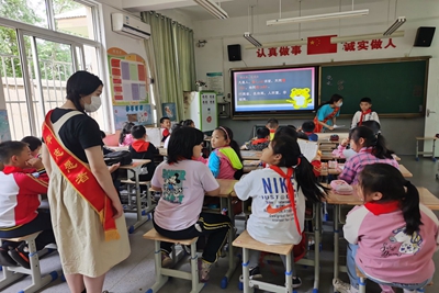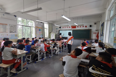 下午一点四十,志愿者们准时到达杨庄小学,开始进行《弟子规》教学。在活动过程中,两位志愿者各司其职,一位志愿者负责进行《弟子规》的讲授,利用课件以及趣味视频的形式丰富课堂内容,通过“负荆请罪”“晏子使楚”等典故教导学生如何在生活中待人接物,并和同学们进行生动有趣的问答互动,让学生更清晰地了解优秀传统文化的深刻内涵;另一位志愿者负责管理课堂纪律,维护课堂秩序,并督促同学们认真做好笔记,使他们能更加认真地投入进课堂中。同时,文学院入党积极分子们也认真履行自己的职责,悉心讲解《弟子规》里面的典故和文化内涵。志愿者们相互配合,相互帮助,高质量地完成本次教学任务。