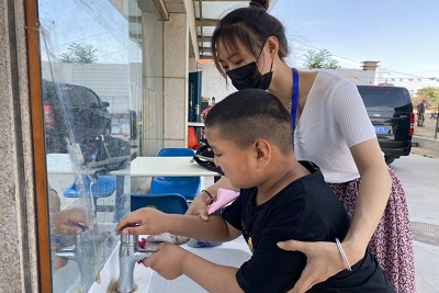 5月25日13点30分,志愿者们集合前往信望爱基地。到达信望爱基地后,志愿者们进行签到,接着开始了此次志愿活动。志愿者们和自闭症患者们一起交流,慢慢熟悉。随着基地的音乐响起,又到了音乐律动时间,志愿者们牵着自闭症患者的手,伴着音乐与自闭症患者们一起散步,同时努力与他们交流,了解他们的情况。休息结束后,志愿者们陪自闭症患者们跳皮筋、砸沙包、打羽毛球,让自闭症患者感到快乐的同时对他们进行康复性的训练。游戏时间结束,志愿者们接过了老师手中的乐谱,教自闭症患者们唱《我和我的祖国》。自闭症患者们与志愿者齐声高歌,伴随着歌声的消散,志愿者们圆满完成此次志愿活动。
