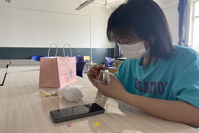 上午10时,本次活动正式开始,志愿者们来到4教503,准备好所需要的工具后,志愿者们便打开了相关的视频教程,各自拿着针线编织起来。活动已经开展了多次,志愿者们经历了拆了织,织了再拆的阶段,技术已经越来越娴熟,对于锁针、短针、中长针、长针等钩针基础他们已经能够熟练掌握。通过网络视频,志愿者们又学会了长长针等针法。有人编织小花,有人编织爱心,有人编织小钱包……大家互不打扰,但是遇到困难时,他们一起交流,互相帮助,氛围融洽而和谐。最后志愿者们进行了作品展示,并拍照留念,本次活动圆满结束。炎炎夏日,志愿热情更胜。本次活动的所有钩针作品会被拿去义卖,所筹款项会捐赠给贫困地区老人,传递志愿者们的温情与爱意。