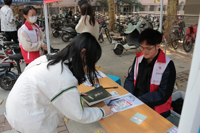 热情真诚,树材子之风。活动当日,第一班志愿者提前携带活动物资到八食广场布置场地,他们搭好帐篷、挂好条幅、准备好图书卡片和登记表,于上午十点准时开始本次图书征集活动。活动伊始,志愿者们热情地向来往同学介绍本活动的相关内容,他们真诚的笑容吸引了许多同学参与进活动中来。活动期间,志愿者们按照组内分工,有的为同学们介绍捐赠书籍的相关注意事项,有的为前来捐赠书籍的同学做好登记,还有的向同学们宣传“图图书角”的建设理念和运营时间地点……随着人流量增多,活动现场气氛愈发热烈,越来越多热爱书籍、热爱文学的同学前来捐赠自己所爱之书,并希望能通过本次活动让书籍在每一个读书人的手中传递,让书中文字的甘露滋润更多人的心田。随着时间流逝,征集活动于两点准时结束。志愿者们将每一本书编上编号,再次核对了书籍信息。在确保信息无误后,志愿者们合影留念,并将图书送至图书角进行登记造册与分类整理。至此,“图图书角”首次图书征集活动圆满结束。