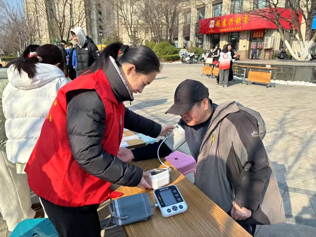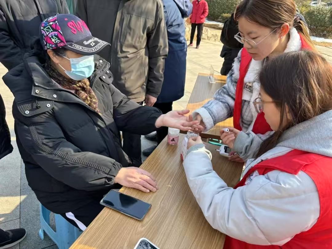 在兴华社区,青年志愿者们设置健康义诊区,为社区居民们提供血糖、血压测量服务。志愿者们摆放好血压、血糖测量仪,引导居民有序进行测量。在交流中,志愿者们深入了解到居民们的日常饮食、作息习惯,并根据测量结果,提出生活方面的建议。对于高血压人群,志愿者耐心地强调健康饮食与规律作息的益处。