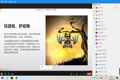 晚七点,活动参与者们准时进入线上会议室。活动伊始,负责人向同学们简要介绍了活动流程,并强调了活动相关注意事项。随后,主持人田玉旋同学就当前野生动物面临的严峻形势以及我国打击非法野生动物市场和贸易的现况做了简要介绍,并通过PPT的形式着重分享了作为青年应该如何认识并保护野生动物的内容。田玉旋同学指出,作为一名大学生首先应该学会尊重自然和生命,应自觉保护野生动物,遵守我国相关法律法规,减少对自然资源的消耗和污染,为野生动物带来更多的生存空间,同时也呼吁大家日常做好保护野生动物的宣传工作。田玉旋同学的观点引发了大家的共鸣,与会同学纷纷表示要从自我做起、从现在做起,自觉保护野生动物,尽自己最大的努力维持生态平衡。最后,此次活动的负责人将相关游戏链接发放到群里,会后由同学们自行完成游戏任务。至此,此次活动圆满结束。