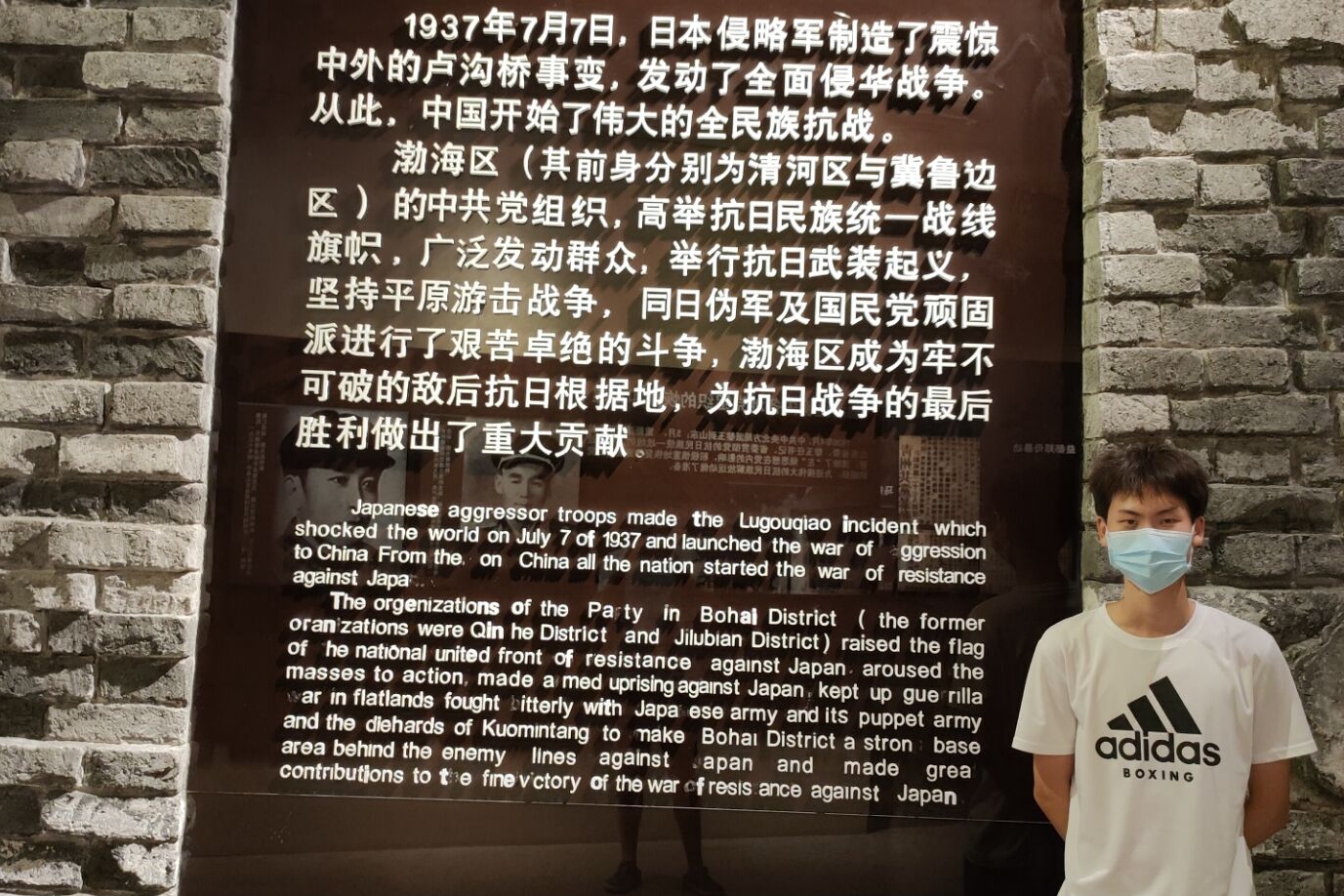该实践团队队长郝书鹏及队员等人,于8月11日来到了位于滨州市的渤海革命老区纪念园。渤海区是中国共产党建立基层组织并开展革命活动较早的地区之一,是抗日战争时期山东最大的平原抗日根据地和解放战争时期我整个华东战场的重要后方基地。
