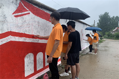 7月19日下午,团队成员在当地人员的带领下,参观了凯米特铝业、恒欣药业、费县电商孵化基地以及安信木业。通过对企业的参观学习加深了对所学知识的认知,拓宽了视野。7月20日,实践团队抵达田胜庄村,在对当地墙体进行测量以后,制定了设计方案、对墙体进行初步设计并且进行墙体粉刷。7月21日,团队正式开始田胜庄村的墙体彩绘。在经过两天的绘制后,团体已经完成共计约70平米墙绘。在接下来的几天,团队将继续进行墙体彩绘工作,并前往大青山抗日革命根据地进行党性教育。