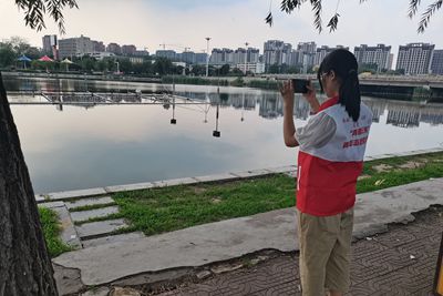 活动前期,团队召开了线上会议,对宋金河的历史及周边红色故事等资料进行了收集和整理,为前往实地调研打下了良好的基础。下午3时许,团队成员来到宋金河公园,入目一片青翠,公园生态良好,树林茂密,空气清新。团队成员深入调研,观察到河流附近有老人在公园长廊里唱戏、听戏,让“戏曲之乡”优秀文化在此传承,营造了人与自然和谐相处的美好氛围。走进林间小道,团队成员发现有几人在此下棋博弈,围棋内涵丰富,局势瞬息万变,引人驻足。来到宋金河河边,团队成员观察到宋金河水域环境良好,在阳光照射下水面波光粼粼,微风轻泛涟漪。河内生态环境良好,能看到鱼儿跃出水面。远处漂泊着一艘艘游船,据了解,是当地政府对水系和沿岸环境治理后发展的水上旅游项目。除此之外,此处端午文化传承良好,每逢端午,经典的“赛龙舟”项目在此开展。靠近岸边的水面露出芦苇,守卫着宋金河,护送着流水,由南向北,一路远去。据调查,宋金河全长百余里,旱能浇,涝能排,河中盛产鱼虾。从王营经八里河、坝头到唐店一段,水面宽四五百米,水深且清,是旅游开发的宝贵资源,孕育着郓城人民。而且,宋金河又名“宋江河”,是水浒文化的重要代表,承载着悠久的历史文化。近年来,当地政府通过设置警示牌、定时巡逻清理垃圾、周期水质调查等行动保证了宋金河的水质安全,同时依托宋金河开展了一系列文化活动,让城市的文化内涵于此源远流长。