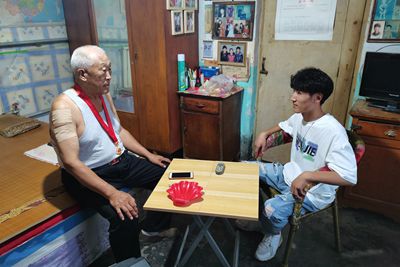 活动前,团队成员提前联系了本次活动要探望的孙寿荣爷爷。确定探望时间后,孙立冬汇总了一些访问的问题并确定了访问的流程。活动当天,团队成员来到孙寿荣爷爷的家中。在与孙爷爷的交谈中团队成员们得知,孙寿荣爷爷今年73岁高龄,于1967年在军队中入党,距今已有54年。孙爷爷告诉团队成员,自己曾经是北京军区高炮七十九师的一名炮兵,参与了1968年抗美援越战争,在听孙爷爷讲述的过程中,团队成员们深刻感受到那个年代革命先辈们的不易,心中对革命前辈的敬仰之情油然而生。就在前不久,孙爷爷还荣获了一枚在党五十年的纪念章。当孙爷爷把纪念章拿在手上时,他的脸上洋溢着无比骄傲与自豪的神情。团队成员在看到纪念章之后,心中充满了敬佩。与此同时,也更加坚定了入党的信念。