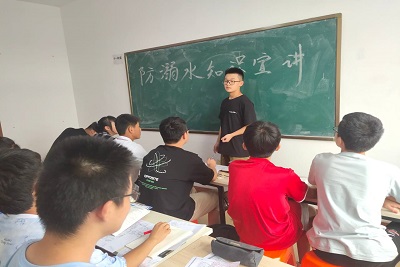 “生命是来之不易的,需要好好珍惜。”团队成员刘文浩来到山东省青岛市胶州市三里河街道向当地青少年进行防溺水志愿宣讲。刘文浩以一个个沉重的事例,一组组惊心的数据引起大家对防溺水的重视。接着,他针对溺水事故的特性和发生的客观原因,警示在场的青少年儿童严格遵守“六不准”,以此防范溺水事故的发生。最后,他向大家传授了基本的防溺水技能,提高孩子们遇险时的自救能力。通过此次宣讲活动,有利于帮助青少年儿童增强防溺水意识,掌握防溺水知识,提高应急脱险能力。