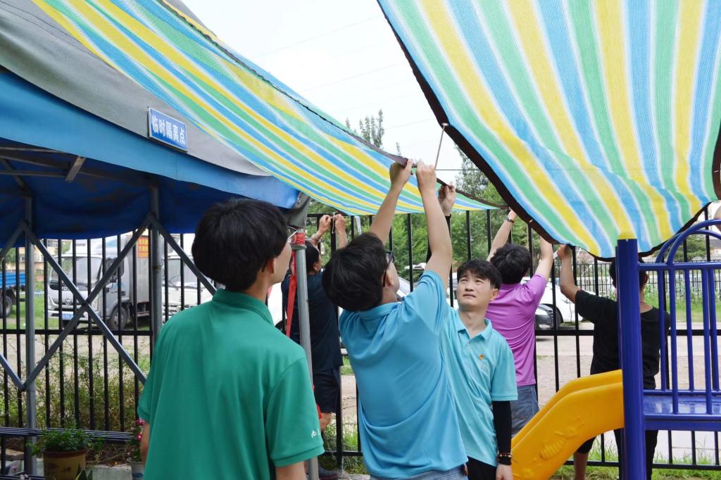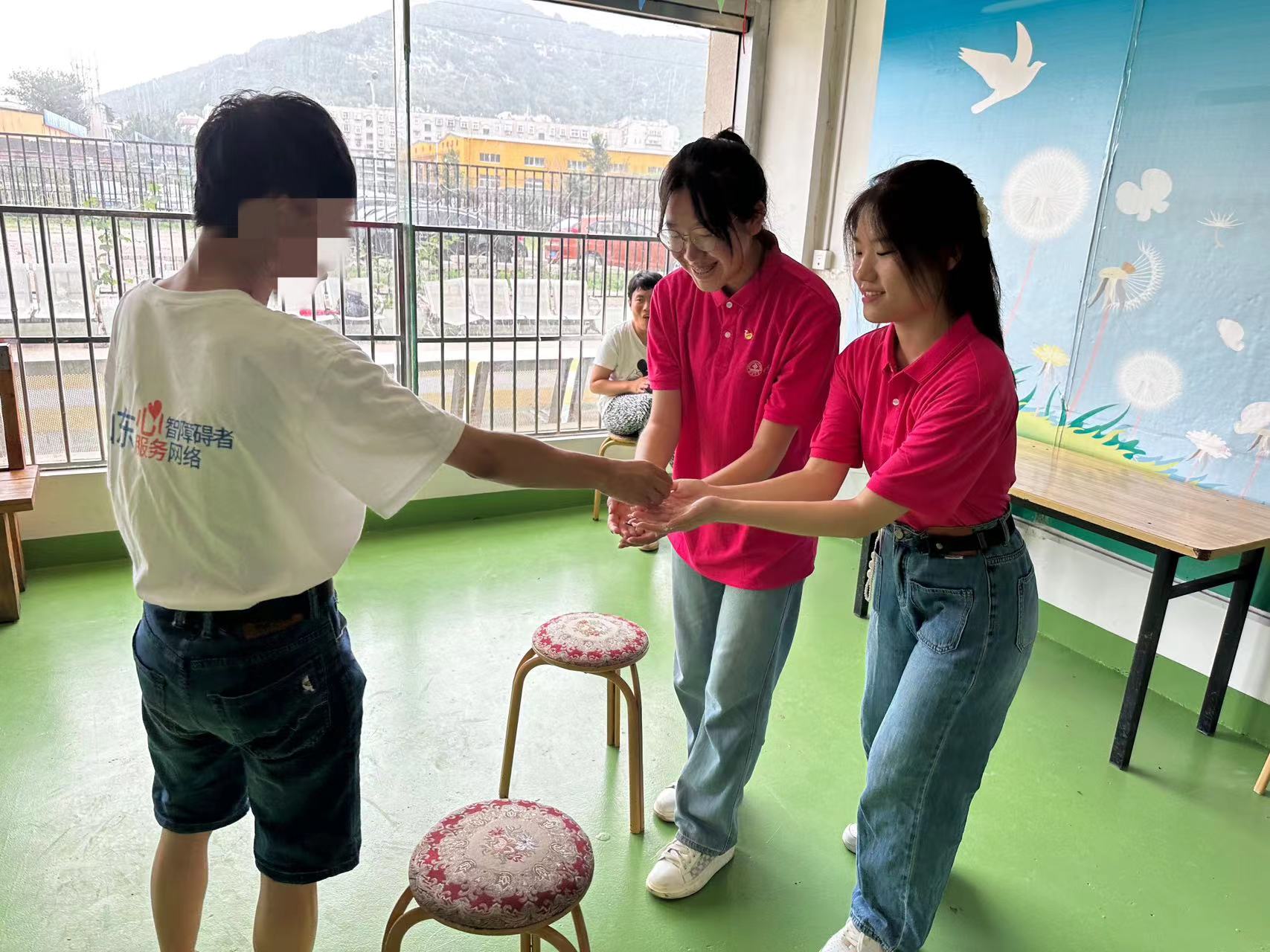以青春之名,赴志愿之约。团队成员首先前往济南市信望爱残疾人服务中心,实践团队长与服务中心工作人员进行对接,经过简单的介绍及培训过后,团队成员有序展开各项活动。成员们积极与患有自闭症的孩子们交流互动,为他们带去欢乐与喜悦,用笑容融化孤独,用耐心感化心灵;搭建遮阳棚、清理活动室,为孩子们创造更加舒适的生活环境,用爱心驱散阴霾,用温暖助力成长。团队成员认真服务的态度和不怕苦、不畏难的精神,受到了信望爱残疾人服务中心工作人员的一致赞扬。