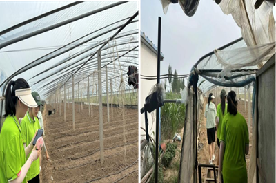 聚焦乡村产业发展,助力乡村振兴。实践团基于当地产业结构实地调研,从当地重点特色第一产业入手,进大棚,深入探索三农。鞠家村注重打造品牌农产品,以大棚种植为主,发展“曲堤牌”黄瓜、曲堤大蒜、黄河大米、冬枣等特色产品,推动了全镇经济发展。团队成员深入大棚,调研农田产量、机械化程度及耕种周期情况等实际问题,深入掌握农业在当地产业结构中的重要分量,推动提高产品附加值,探寻第一第三产业结合发展之路,以特色农产品推进发展旅游副产品,为当地产业结构优化调整提供新思路,为特色农业的持续发展注入新的活力。
