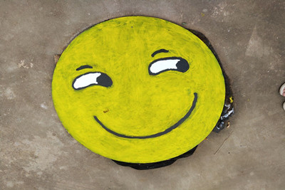 因为手里的颜料只剩下了黑白两种颜色,于是我们这一次选择了一个动画人物“大白”的图案,只是将其中的红色换成了黑色而已。不过因为图案比上一次复杂了一些,这一次的涂鸦难度也比上次大了许多,耗时也比较长。并且,我们所要画的图案是由黑色和白色构成的,画出来的效果远远不及照片上红色底的漂亮,也没有第一次亮黄色的笑脸显眼,但因为有了上一次涂鸦的经验,所以我们的这一次涂鸦活动也相较于上一次顺利了一些。我们首先勾画了轮廓,有些线条是在井盖外围的,对我和妹妹的绘画水平要求还挺高的,不过幸好我们两个由上一次的经验所得带了粉笔,这次画的轮廓线条格外的顺滑。其次填色的时候因为画笔只有两只比较细的,我们还找了一只废弃的毛笔让上色的时候更轻松一些,最后呈现的效果出乎了我们的意料,十分的好。