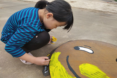 这次的涂鸦进行了两个半小时左右,不过这次离家比较远,我们向周围村民家借了清扫工具来尽量让井盖干净一些,而且这次井盖的位置附近有小孩子的村户比较多,除了只有黑白两种颜色显得没有那么活泼以外,大白这个温暖卡通形象也十分深入人心。期间也向周围的一个阿姨解释了一下我们的涂鸦活动,能够得到村民的支持我们非常开心,过几天可能会帮助发小的墙绘实践活动,有了两次井盖涂鸦的经验的我希望我们的行动会更顺利一些。不过很可惜的就是这次没有拍下照片,但是看到自己画出来的成果还是十分的开心的。看到自己为家乡的井盖画出来的美丽图案,我的内心不禁想到,我们在享受乡村景象的同时,也有责任和义务来为美化我们的家园贡献属于自己的一份力量。